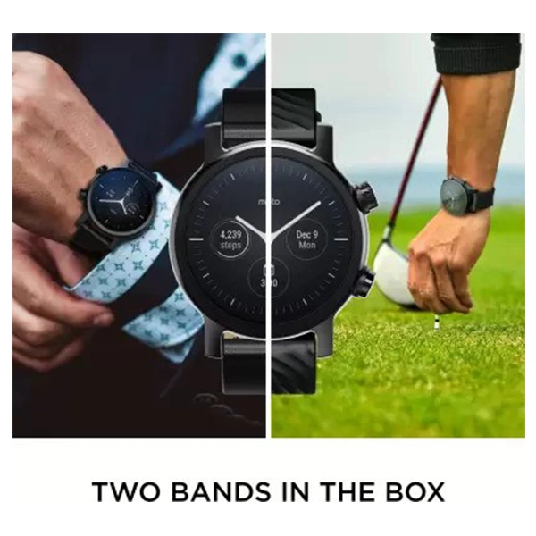 - Wear OS by Google: The Moto 360 runs on Wear OS, which provides access to Google’s extensive suite of apps and services, including Google Assistant, Google Fit, Google Pay, and more. It's compatible with both Android and iOS smartphones.